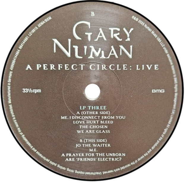 An unforgettable experience for Numan and Numanoids alike, this iconic show is now presented on two limited edition formats including a 3LP live album and a 2CD+Blu-ray containing both the audio and video from the show under the moniker A Perfect Circle, referencing his return to the legendary venue. The Blu-ray also features an interview with Gary, including behind-the-scenes footage.