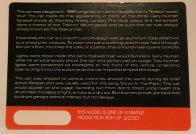 Produced by Corgi UK Premiums in 2019 for Gary's (R)evolution tour. Complete with numbered card and accompanying autographed tour card.