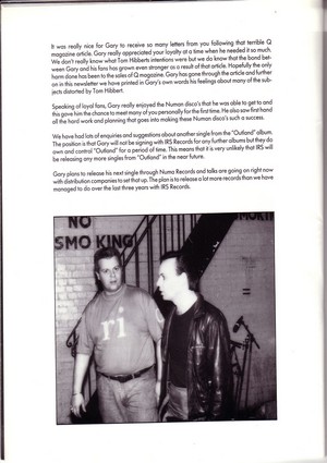 24 pages, Hello from Gary, Fan Club News, Garys Questions, Call Out The Dogs, The Warlords Of Kent, Hotline News, Pen Pals List, Numan Discos.